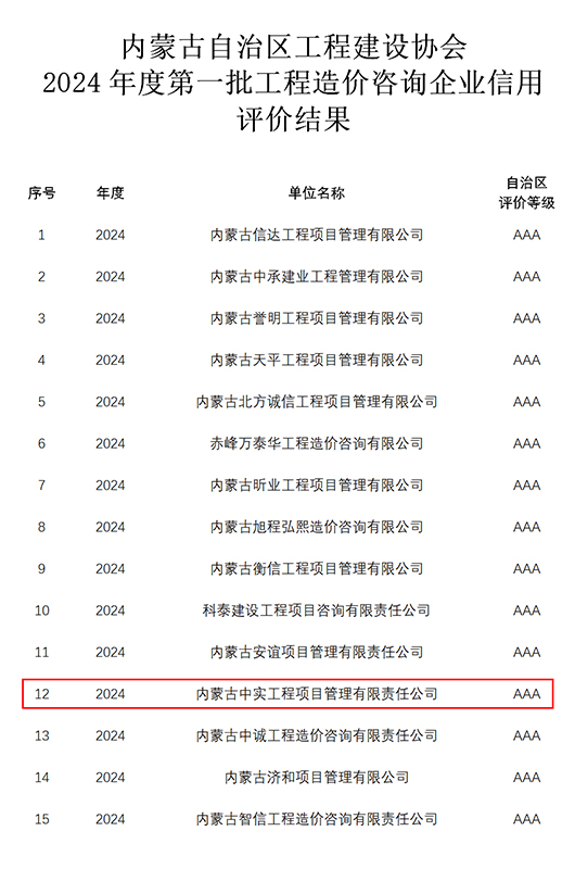 2024-07-3015288 次近期,华体会app注册登录入口参加内蒙古自治区工程建设协会组织的“2024年度第一批工程造价咨询企业信用”申报,获得“信用AAA级证书”。华体会app注册登录入口成立多年以来,遵循中国工程造价管理协会对造价咨询企…